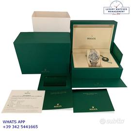 Orologio Rolex originale in tutte le sue parti, nuovo di fabbrica e senza segni di usura, con parziali plastiche originali Rolex ancora applicate sul fondello, full set (scatola, accessori vari, garanzia card ufficiale Rolex valide per 5 anni), garanzia/dichiarazione di vendita nostro negozio valida per 12 mesi.