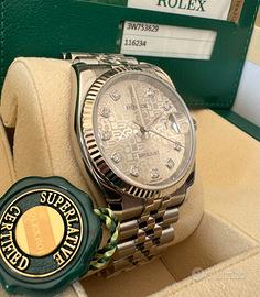 Stupendo Rolex Datejust,ref 116234,ghiera in oro bianco,36 mm,bracciale jubilee,dial computer diamanti,anno 2015,full set,vendo a 9000 euro