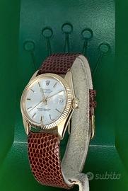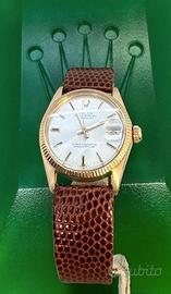 Rolex Datejust Lady Oro 31 mm vetro plexiglas quadrante Argente' indici oro e neri con data .Ghiera zigrinata oro giallo . Cassa oro Doppio Cinturino in pelle e fibbia originale Rolex placcata oro . Ref 6827 ser 358 anno 1973-1074 Movimento automatico cal 2030. Corredo Completo di Scatola e Garanzia Negozio Revisionato e perfettamente funzionante presso il nostro laboratorio Virole Watch snc garanzia 24 mesi