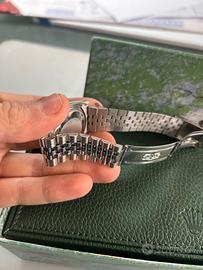 Cassa in acciaio con lunetta oro bianco zigrinata in ottimo stato, bracciale Jubilee.