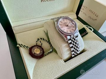 Rolex 36 mm Datejust Oyster Perpetual factory diamond bezel originale ed in condizioni realmente pari al nuovo (ref. 116244). Orologio full set con documenti e scatola originale. NO perditempo GRAZIE