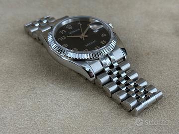 Siamo un negozio Toscano specializzato nell'alta orologeria. Bottega Watches è una realtà da oltre 10 anni. Offriamo sempre garanzia a vita su originalità e coevità. Concediti il lusso della serenità grazie ai nostri servizi post vendita. ROLEX DATEJUST Ref.116234 Computer dial Full set Anno: 2006 Bracciale SuperJubilee Completo di: garanzia Rolex originale porta garanzia scatola contro scatola tag originale riportante referenza,seriale e cod bracciale ceralacca maglia aggiuntiva nostra garanzia. Orologio certificato e garantito, in ottime condizioni Prezzo : 7770€ Per qualsiasi informazione potete contattarci, saremo lieti di accogliervi nel nostro negozio situato in Piazza San Francesco D'Assisi 50, Pistoia