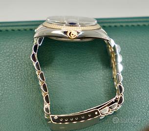 Rolex Datejust Ref. 16013 Blue Diamond Dial REF: 16013 Marca: Rolex Condizioni: Molto Buone Nome/Numero modello: Datejust Seriale: 5.XXX.XXX Anno: 1980 Movimento: automatico cal. 3035 con 48 ore di riserva di carica Materiale cassa: acciaio / oro Ghiera: liscia acciaio Quadrante: Blu diamanti degradè (after) Bracciale: Jubilee 62523H-18 finali 455 Rolex Datejust Ref. 16013 cal. 3035 , L’orologio condizioni molto buone, movimento automatico con 31 rubini e 48 ore di riserva di carica, il fondello è a vite. L'orologio misura 36 mm, mentre il Bracciale 20 mm. Orologio revisionato di recente e perfettamente funzionante OROLOGIO CON NOSTRA GARANZIA 12 MESI (NO GARANZIA ROLEX). OROLOGIO VISIBILE PRESSO IL MIO NEGOZIO DI PADOVA PREVIO APPUNTAMENTO. DICHIARO CHE L’OROLOGIO È ORIGINALE IN OGNI SUA PARTE