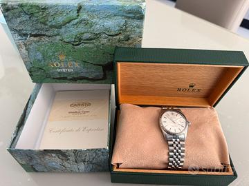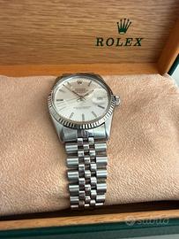 Rolex Datejust Ref. 16014 con ghiera in oro bianco – Anno 1984 | Condizioni pari al nuovo. L’orologio è stato appena completamente revisionato, con interventi eseguiti da tecnico specializzato: * ✔️ Revisione completa del movimento automatico con Sostiuzione Rotore. * ✔️ Lucidatura professionale della cassa e del bracciale * ✔️ Sostituzione vetro plexiglass (plastica) nuovo * ✔️ Test di pressione e verifiche contro infiltrazioni d’acqua effettuate * ✔️ Perfettamente funzionante e pronto all’uso Caratteristiche: * Modello: Datejust * Referenza: 16014 * Anno: 1984 * Movimento: Automatico * Materiale: Acciaio con ghiera in oro bianco * Bracciale: Jubilee originale Le condizioni estetiche e meccaniche sono pari al nuovo, difficile trovarne uno così conservato e revisionato. Prezzo 4.900€ Ritiro a Mano Verona e dintorni