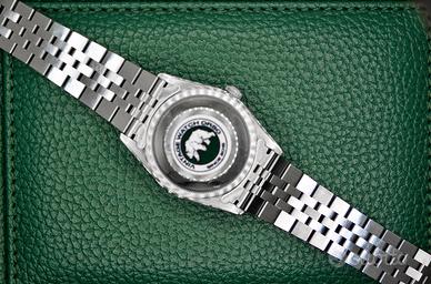 L'orologio misura 36 mm, mentre il Bracciale 20 mm.