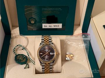 Vendo elegantissimo Rolex datejust Wimbledon bracciale jubilèe diametro cassa 36 mm acciaio e oro giallo. Orologio completo del suo corredo originale e in perfette condizioni. orologio ancora in garazia Rolex fino al 01-12-2027