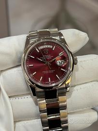 Commerciante Vende Rolex Day-Date 118209 oro bianco. Orologio completamente in oro bianco venduto con tutto il suo corredo originale. Cassa:36mm Garanzia italia 2007 + service Rolex 2026 (garanzia rolex fino al 2028) Dial: cherry Orologio in perfette condizioni. Accettiamo permute.
