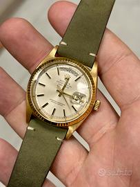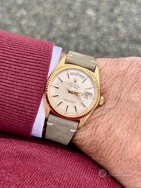 Cassa 36mm e lunetta in oro giallo 18k, piene e in ottimo stato (come si può vedere dai biselli). Disco del giornoin italiano, disco data open 6/9.