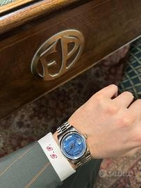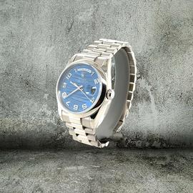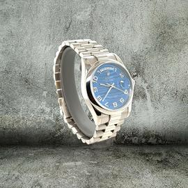 Dite la verità: quante volte avete visto questo Daydate? Pochissime o mai! Il quadrante “ Blue Waves “ le onde del mare, rientra fra i quadranti moderni più rari, un orologio per un polso di grande carattere e personalità. La finezza dell’oro bianco con il contrasto del Blue quadrante, non passeranno inosservati.