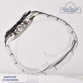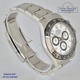 Rolex Daytona 116500LN Cosmograph acciaio, prima serie anno di produzione 2017, ghiera Cerachrom colore nero con scala tachimetrica 400, vetro zaffiro antiriflesso e antigraffio, quadrante colore bianco con indici e sfere al Chromalight, movimento meccanico a carica automatica, bracciale acciaio Oyster con chiusura deployante Rolex.