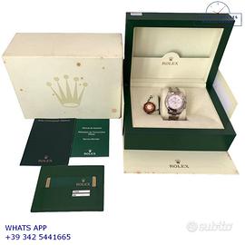Orologio originale Rolex in ogni sua parte, revisionato in ottime condizioni, segni di usura assenti o appena visibili, full set (scatola, accessori vari, garanzia card originale Rolex), garanzia/dichiarazione di vendita del nostro negozio valida per 12 mesi.
