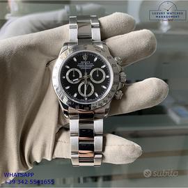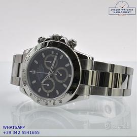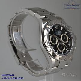 Rolex Daytona 116520 cronografo acciaio, anno di produzione 2006, ghiera acciaio a scala graduata 400, vetro zaffiro antiriflesso, quadrante colore nero a tre contatori orizzontali indici e sfere al LumiNova, movimento meccanico a carica automatica, bracciale Oyster acciaio con chiusura deployante originale Rolex.