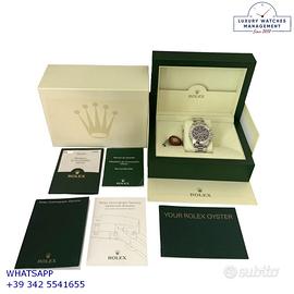 Orologio Rolex originale in ogni sua parte, revisionato in ottime condizioni, segni di usura assenti o appena visibili, full set (scatola, accessori vari, garanzia traforata ufficiale Rolex), garanzia/dichiarazione di vendita del nostro negozio valida per 12 mesi.