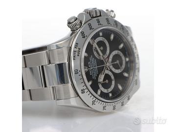 Clover Gioielli pone in vendita Rolex Daytona Ref. 116520 realizzato in acciaio, quadrante nero chromalight, cassa di diametro 40 mm, corona di carica a vite e pulsanti in acciaio, lunetta in acciaio con scala tachimetrica 400. Bracciale Oyster in acciaio. Orologio in condizioni eccellenti revisionato a Febbraio 2026. Full Set. Garanzia bicolore datata 03/2015.
