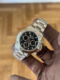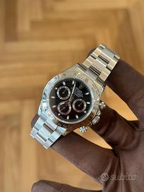 Rolex Daytona è in condizioni impeccabili come puó vedere appena revisionato nel 2024 ufficiale rolex ed ancora in garanzia valida in tutto il mondo fino al 2026 l’orologio è completo di tutto, scatola e garanzia + service rolex pagato 1.800€ nel 2024 il prezzo è di 18000