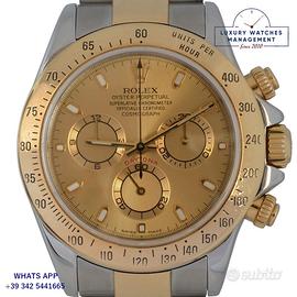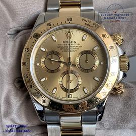 Rolex Daytona 116523 con simbolo UAE Hawk of Quraysh acciaio e oro giallo 18KT anno 2002, ghiera in oro giallo 18KT a scala graduata 400, vetro zaffiro antiriflesso, quadrante colore champagne a tre contatori indici e sfere al LumiNova, movimento meccanico a carica automatica, bracciale Oyster in acciaio e oro giallo 18KT con chiusura deployante originale Rolex.