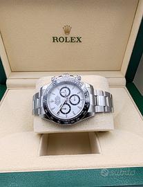 Rolex Daytona Panda Ref. 126500LN Quandrante Bianco/Dial White Completo/Full Set Orologio nuovo, mai indossato/New never worn Anno di Produzione: 2026 Finanziabile. L'orologio viene venduto comprensivo di scatola, libretti, garanzia ufficiale Rolex. Il nostro laboratorio specializzato si avvale di tecniche e macchinari all’avanguardia, in grado di eseguire revisioni, riparazioni, rimagliature e lucidature su cassa e bracciali in modo da poter conferire ai vostri orologi il loro aspetto originario. Possiamo valutare il tuo orologio in maniera gratuita e sicura. Successivamente potrai decidere se venderlo o permutarlo per l'acquisto di un nostro orologio. Se foste interessati ad una referenza che attualmente non è disponibile sul nostro sito, potete contattarci e noi la troveremo per voi. Nel caso non riusciate a venire a trovarci siamo in grado di effettuare il servizio di spedizione assicurata e in poco tempo riceverete il vostro orologio comodamente a casa. Per visionare l'orologio presso la nostra sede è necessario prendere un appuntamento