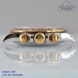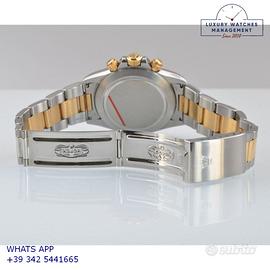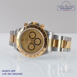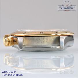 Rolex Daytona 16523 acciaio e oro giallo 18KT, anno di produzione 1989, ghiera MK1 in oro giallo 18KT scala graduata 200, vetro zaffiro, quadrante colore champagne a 4 scritte con sei rovesciato originale coevo Rolex dell'epoca, movimento meccanico a carica automatica, bracciale Oyster acciaio e oro giallo 18KT con chiusura deployante originale Rolex.