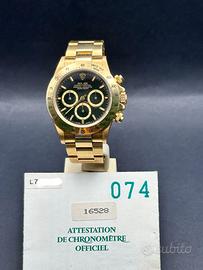 Proponiamo un Rolex Daytona ref. 16528 in oro giallo 18 kt, equipaggiato con il celebre movimento Zenith El Primero, uno dei più ricercati dai collezionisti per storicità e fascino meccanico.
