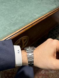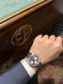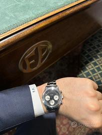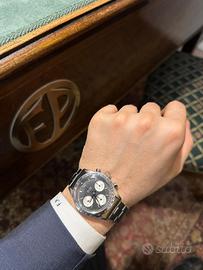 Marca : ROLEX Modello : DAYTONA Referenza : 6239 Diametro : 37mm Carica : Manuale Anno : 1964 Materiale Cassa : Acciaio Materiale Cinturino : Acciaio Riserva di Carica : 50h Impermeabile : No Materiale Lunetta : Acciaio Quadrante : SOLO Vetro : Plexiglas Condizioni : OTTIMO Corredo : FULL SET ROLEX 6239 SOLO prima serie BLACK Una delle più rare e prime configurazioni del Rolex Daytona, trattasi di una prima serie con quadrante NERO e SENZA scritta Daytona, solo Rolex Cosmograph centrale. Quadrante: Nero, prima seria “ Rolex Cosmograph SOLO “ Meccanismo: Carica manuale 722 Bracciale: Oyster Rivettato Corredo: Scatola e documenti originali dell’epoca. Garanzia aggiuntiva della nostra orologeria. Tutti i nostri orologi usati sono revisionati presso il nostro laboratorio professionale. Ottimo come investimento o regalo. Valutiamo permute parziali e totali. Grazie per l’interesse