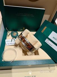 Vendo daytona acciaio e oro anno 2019 ref. 116503 card bicolore dove ce la specifica del quadrante, del bracciale e del rivenditore, tenuto in condizioni eccelelnti. Completo di tutto il suo corredo come si evince dalle foto, garanzia, libricini, coprighiera, tag, scatola, controscatola. Bracciale tesissimo che significa utilizzato pochissimo. Non vendo x bisogno quindi astenersi perditempo.