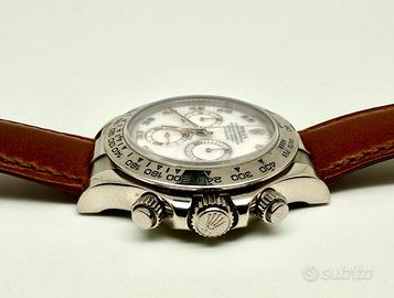 Marchio Rolex Modello Daytona Referenza 116519 MovimentoAutomatico Cassa Oro Bianco Anno 2000 Corredo Con scatola originale e documenti originali Misura 40 mm Vetro Zaffiro Quadrante Madreperla SI RICEVE SU APPUNTAMENTO