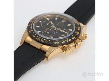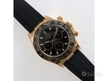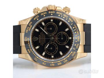 Clover Gioielli pone in vendita Rolex Daytona ref. 116518LN realizzato in oro giallo 18 kt, quadrante nero, lunetta in ceramica nera con scala tachimetrica 400, cassa di diametro 40 mm , corona di carica e pulsanti del chrono a vite, cinturino modello oysterflex nero. Orologio in condizioni eccellenti. Anno 2023. Full set.