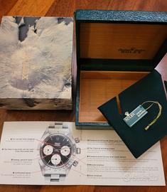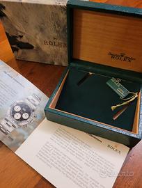 Vendo set accessori originali Rolex 4 pz. per Daytona ref. 6265 anni '80 , composto da : scatola 67.80.3 con inserto controscatola crateri lunari libretto Daytona 6.81 Usa / inglese tag verde Si vende il set completo. Si dichiara che tutti gli oggetti sono originali al 100 % , di mia proprietà e di lecita provenienza. La spedizione sarà gestita direttamente da me, visto la rarità e il valore.