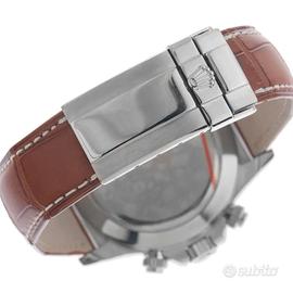 Cassa in oro bianco 18kt lucido e satinato, diametro cassa senza corona 40mm, spessore cassa 12.5mm. Lunetta in oro bianco 18kt lucidata e incisa con scala tachimetrica. Bracciale Rolex in pelle di coccodrillo marrone con cuciture decorative, ansa larghezza 20mm, chiusura deployante di sicurezza in oro bianco 18kt con logo del produttore. Quadrante bianco con numeri arabi applicati e lancette lucide. Movimento automatico, cronografo, cronometro con certificato, calibro Zenith El Primero 4030 con 31 pietre. Visualizzazione delle ore e dei minuti tramite lancette centrali, piccoli secondi con secondi di arresto per l'impostazione dell'ora a ore 6 al secondo. Vetro zaffiro antigraffio. Corona a vite con protezione laterale e logo del produttore, pulsanti cronografici a vite. Fondello a vite in oro bianco 18kt. Peso dell'orologio compreso il bracciale 122 g.