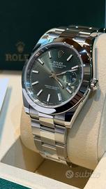 Negozio RC Orologi, situato in Via A. Poerio 22 a Mestre (Venezia), vende Rolex Datejust 126300 acciaio 41mm. Bracciale oyster. Quadrante verde menta. Anno 2025. Nuovo mai indossato. Completo full set. Garanzia 2030. Stupendo. Valuto permute (non a distanza) , con controllo in negozio, principalmente con Rolex recenti o revisionati negli ultimi 24 mesi, completi full set, solo in eccellenti condizioni. Contatto diretto Whatsapp Pagamento solo bonifico bancario, bancomat, carta di credito o contanti nei limiti di legge ( NO “tutto contanti”, no rate, no finanziamenti, no dilazioni, NO TAX FREE ).