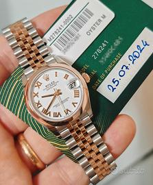 Datejust Lady donna 31 mm acciaio e oro rosa. Ultimo modello Ref. 278241. Lunetta liscia oro rosa e bracciale jubile. Quadrante smalto bianco e numeri romani in oro rosa. Condizioni pari al nuovo. Luglio 2024 Italiano. Corredo completo full set. Oltre 4 anni di garanzia Rolex ufficiale. Listino attuale di 13200 quindi sono parecchio sotto listino. Garantisco con contratto di vendita l'originalità e la lecita provenienza di questo segnatempo. NO TRUFFE E NO PERDITEMPO. Incontro solo in gioielleria. NON TRATTABILE PERCHÈ I PREZZI SONO AI MINIMI DI MERCATO. Per le permute solo full set.