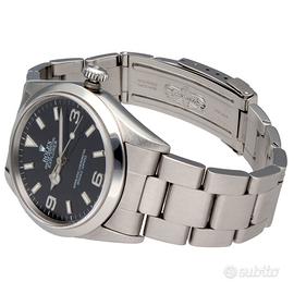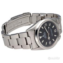 Rolex Explorer 1 referenza 14270 con cassa in acciaio da 36 mm e quadrante nero con numeri arabi 3-6-9, uno dei modelli più iconici e apprezzati della produzione Rolex. Orologio dal design sportivo ed essenziale, adatto ad ogni utilizzo quotidiano. Dati tecnici: Marca: Rolex Modello: Explorer Referenza: 14270 Seriale: A780XXXX Anno: circa 1999 Movimento: automatico Cassa: acciaio Bracciale/Cinturino: bracciale Oyster Quadrante: nero Diametro: 36 mm Vetro: zaffiro Impermeabilità: 100 m Funzioni: Ore Minuti Secondi Corredo: Solo orologio Nostra garanzia 24 mesi L'orologio è originale e di lecita provenienza. Per visionare l'orologio di persona è necessario prendere un’ appuntamento in negozio. L'orologio viene venduto comprensivo di garanzia del nostro negozio, valida 24 mesi e garantisce il buon funzionamento, l’originalità e la lecita provenienza. Le foto pubblicate sono realmente dell’orologio in vendita. Permutiamo e acquistiamo il vostro orologio usato delle migliori maison svizzere. Spediamo solo in Europa, con corriere assicurato di nostra fiducia.