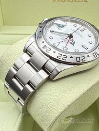 Dodici24 propone ROLEX Explorer II ref. 16570, ultime produzioni con calibro aggiornato 3186 e RRR inciso nel rehaut. Full set e in eccellenti condizioni ℹ️Dettagli principali: 🔹Referenza: 16570 🔹Anno: 2009 🔹Movimento: Automatico 🔹Diametro: 40mm 🔹Materiale: Acciaio Oystersteel 🔹Quadrante: bianco "polar" 🔹Condizioni: eccellenti 🔹Corredo: Full set con scatola originale e documenti originali ✨ Acquista in totale serenità 🚚 Spedizione tracciata e assicurata in tutta Europa Ogni ordine viaggia in sicurezza fino alla tua porta. 🔍 Qualità garantita Tutti i nostri orologi vengono attentamente controllati e revisionati dal nostro laboratorio di fiducia, per offrirti massima affidabilità e precisione e garantirti autenticità in ogni componente. 🔄 Valutiamo permute Accettiamo orologi da includere nella trattativa di acquisto, previa valutazione delle condizioni e valutazione del valore. 🏬 Visione e ritiro disponibili Puoi venirci a trovare nei nostri orari di apertura oppure fissare un appuntamento dedicato. Non esitare a contattarci per ricevere maggiori informazioni sui nostri orologi in vendita. Visita il nostro sito internet e la nostra pagina Instagram.