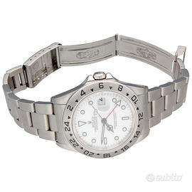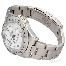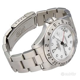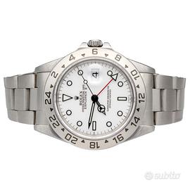 Rolex Explorer II 16570 Polar Full Set 1998 Rolex Explorer II nella classica configurazione “Polar” con quadrante bianco, una delle varianti più iconiche e apprezzate della referenza 16570. Prodotto alla fine degli anni ’90, rappresenta un perfetto equilibrio tra sportività e indossabilità quotidiana, con dimensioni da 40 mm e un’estetica pulita e altamente leggibile. Esemplare completo di corredo. Dati tecnici: Marca: Rolex Modello: Explorer II Referenza: 16570 Anno: 1998 Movimento: Automatico Materiale cassa: Acciaio Diametro: 40 mm Quadrante: Bianco (Polar) Vetro: Zaffiro Bracciale: Oyster Funzioni: Ore Minuti Secondi Data GMT (secondo fuso orario) Corredo: Full set, con data di acquisto 04/2021. Nostra garanzia 24 mesi L’orologio è originale e di lecita provenienza. Per visionare l’orologio di persona è necessario prendere un’ appuntamento in negozio. L’orologio viene venduto comprensivo di garanzia del nostro negozio, valida 24 mesi e garantisce il buon funzionamento, l’originalità e la lecita provenienza. Le foto pubblicate sono realmente dell’orologio in vendita. Permutiamo e acquistiamo il vostro orologio usato delle migliori maison svizzere. Spediamo solo in Europa, con corriere assicurato di nostra fiducia.