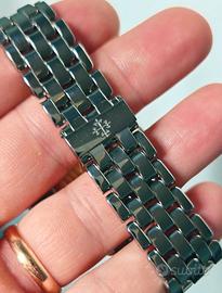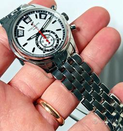 Propongo in condizioni di pari al nuovo (Mint Condition) uno dei modelli più iconici e moderni della manifattura di Ginevra: il Patek Philippe 5960/1A con splendido quadrante argenté opalino. Questa referenza segna un passaggio storico per il brand, combinando per la prima volta l'acciaio con le complicazioni nobili di Cronografo Flyback e Calendario Annuale. Dettagli dell'esemplare: Referenza: 5960/1A-001 Anno: 2015 Quadrante: Opalino con dettagli neri e rossi (look sportivo-elegante) Materiale: Acciaio con bracciale a maglia "goutte" (altissima vestibilità) Condizioni: Eccezionali, pari al nuovo. Corredo: Full Set completo (Scatola originale, controscatola, libretti e Garanzia Ufficiale) Provenienza: Garanzia Svizzera Caratteristiche tecniche: L'orologio monta il calibro di manifattura CH 28-520 IRM QA 24H, movimento cronografico automatico con funzione Flyback e indicazione giorno/data/mese tramite finestrelle a raggio. Presenta inoltre l'indicatore della riserva di carica e l'indicazione giorno/notte. Un pezzo da collezione destinato a rivalutarsi nel tempo, perfetto per chi cerca un Patek Philippe complicato da indossare quotidianamente grazie alla resistenza dell'acciaio. Garantisco con contratto di vendita l'originalità e la lecita provenienza di questo segnatempo. NO TRUFFE E NO PERDITEMPO. Incontro solo in gioielleria su appuntamento e previo invio documenti. NON TRATTABILE PERCHÈ I PREZZI SONO AI MINIMI DI MERCATO. Per le permute solo full set.