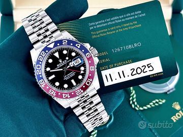 Rolex GMT-Master Pepsi, ghiera ceramica BLU / Rossa, referenza 126710 BLRO, bracciale Jubilee, Novembre 2025.