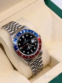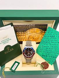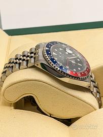 Marca Rolex Modella GMT Master 2 Referenza 16710 Misura 40mm Vetro zaffiro Lunetta Pepsi Carica automatica Materiale acciaio Anno 1997 Calibro 3185 Bracciale jubilee maglia 50 Corredo Garanzia Rolex scatola libretti
