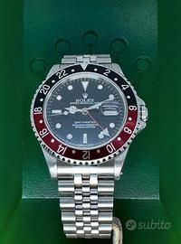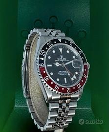 Rolex Gmt Master I Coke 40 mm vetro zaffiro quadrante nero e ghiera rossa nera . Cassa e bracciale acciaio Oyster 50 finali 502 b .