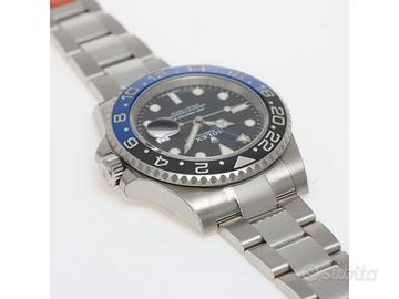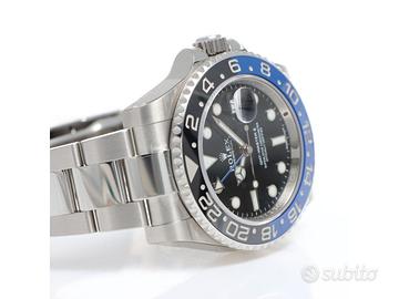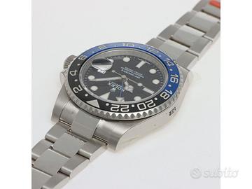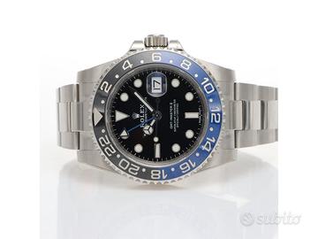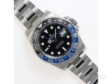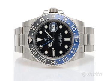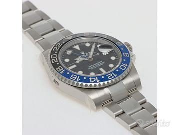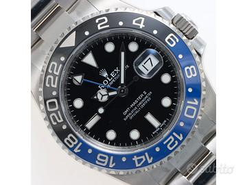 Clover Gioielli pone in vendita Rolex GMT Master II Ref. 116710BLNR "BATMAN" con quadrante nero, cassa di diametro 40 mm in acciaio, corona di carica a vite, datario ad ore 3, funzione GMT, Ghiera girevole bidirezionale con inserto bicolore in ceramica nera e blu con scala delle 24 ore, Bracciale modello Oyster in acciaio. Orologio NOS. Garanzia Italiana datata 03/2017. Full Set.
