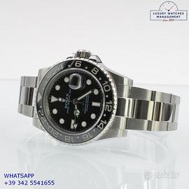 Per conoscere il prezzo e le caratteristiche tecniche dei nostri orologi visita il nostro sito ufficiale: https://lwmitalia.com/it Tutti i nostri orologi vengono verificati e revisionati dal nostro laboratorio specializzato “KeepTime Lab”: https://keeptimelab.com/it/ Rolex GMT Master II 116710LN acciaio, anno di produzione 2008, ghiera acciaio bidirezionale con inserto Cerachrom colore nero, vetro zaffiro antiriflesso con lente ciclope, quadrante colore nero con data indici e sfere al LumiNova, movimento meccanico a carica automatica, bracciale Oyster acciaio con chiusura deployante originale Rolex. Orologio Rolex originale in ogni sua parte, revisionato in ottime condizioni, segni di usura assenti o appena visibili, full set (scatola, accessori vari, garanzia card ufficiale Rolex), garanzia/dichiarazione di vendita del nostro negozio valida per 12 mesi.