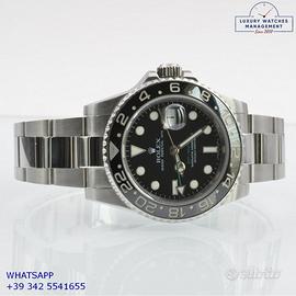 Per conoscere il prezzo e le caratteristiche tecniche dei nostri orologi visita il nostro sito ufficiale: https://lwmitalia.com/it Tutti i nostri orologi vengono verificati e revisionati dal nostro laboratorio specializzato “KeepTime Lab”: https://keeptimelab.com/it/ Note e condizioni: Rolex GMT Master II 116710LN acciaio, anno di produzione 2008, ghiera acciaio bidirezionale con inserto Cerachrom colore nero, vetro zaffiro antiriflesso con lente ciclope, quadrante colore nero con data indici e sfere al LumiNova, movimento meccanico a carica automatica, bracciale Oyster acciaio con chiusura deployante originale Rolex. Orologio Rolex originale in ogni sua parte, revisionato in ottime condizioni, segni di usura assenti o appena visibili, full set (scatola, accessori vari, garanzia card ufficiale Rolex), garanzia/dichiarazione di vendita del nostro negozio valida per 12 mesi.