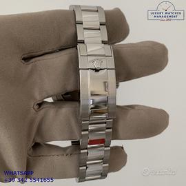 Orologio originale Rolex in ogni sua parte, mai indossato, usato solo per esposizione nella vetrina del negozio ufficiale Rolex, nuovo e senza segni di usura, full set (scatola, accessori vari, garanzia card ufficiale Rolex valida per 5 anni), garanzia/dichiarazione di vendita del nostro negozio valida per 12 mesi.