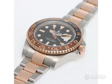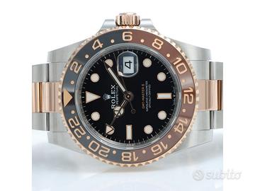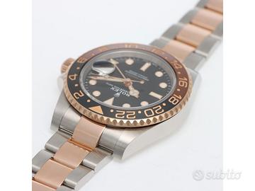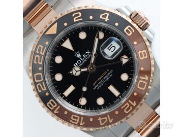 Clover Gioielli pone in vendita Rolex GMT Master II Ref. 126711CHNR con quadrante nero, cassa di diametro 40 mm in acciaio e oro rosa everose18Kt, corona di carica a vite, datario ad ore 3, funzione GMT, Ghiera girevole bidirezionale con inserto bicolore in ceramica Marrone e nera con scala delle 24 ore, Bracciale modello Oyster in acciaio e oro rosa everose 18Kt. Orologio in condizioni eccellenti. Garanzia datata 2018, revisionato 12/2025. Full Set.