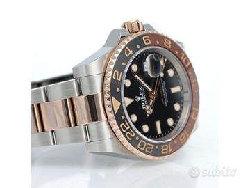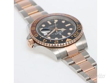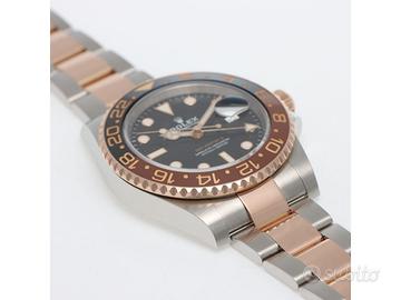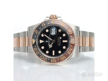 Clover Gioielli Rolex GMT Master II Ref. 126711CHNR con quadrante nero, cassa di diametro 40 mm in acciaio e oro everose18Kt, corona di carica a vite, datario ad ore 3, funzione GMT, Ghiera girevole bidirezionale con inserto bicolore in ceramica Marrone e nera con scala delle 24 ore, Bracciale modello Oyster in acciaio e oro rosa everose 18Kt. Orologio in condizioni eccellenti. Garanzia datata 2019, revisionato 01/2026. Full Set.
