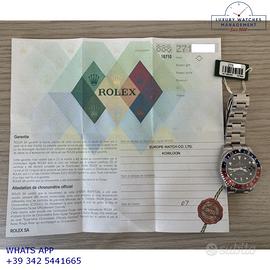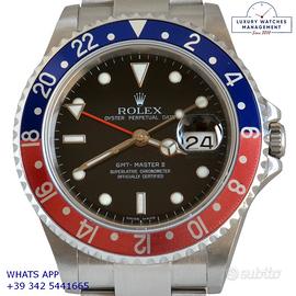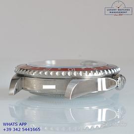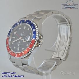 Per conoscere il prezzo e le caratteristiche tecniche dei nostri orologi visita il nostro sito ufficiale: https://lwmitalia.com/it Tutti i nostri orologi vengono verificati e revisionati dal nostro laboratorio specializzato “KeepTime Lab”: https://keeptimelab.com/it/ Rolex GMT Master II acciaio, anno di produzione 2006, ghiera acciaio bidirezionale con inserto alluminio Pepsi colore blu e rosso, vetro zaffiro antiriflesso con lente ciclope, quadrante colore nero con data, indici e sfere al LumiNova, movimento meccanico a carica automatica, bracciale Oyster acciaio con chiusura deployante originale Rolex. Orologio Rolex originale in ogni sua parte, revisionato in ottime condizioni, segni di usura assenti o appena visibili, full set (scatola, accessori vari, garanzia traforata ufficiale Rolex), garanzia/dichiarazione di vendita nostro negozio valida per 12 mesi.