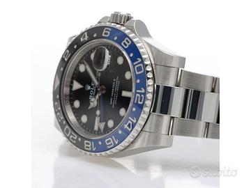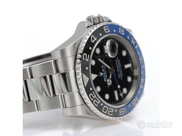 Clover Gioielli pone in vendita Rolex GMT Master II Ref. 116710BLNR con quadrante nero, cassa di diametro 40 mm in acciaio, corona di carica a vite, datario ad ore 3, funzione GMT, Ghiera girevole bidirezionale con inserto bicolore in ceramica blu e nera con scala delle 24 ore, Bracciale modello Oyster in acciaio. Orologio in condizioni eccellenti. Anno 2017. Full Set.