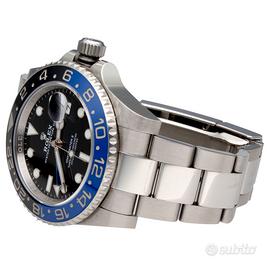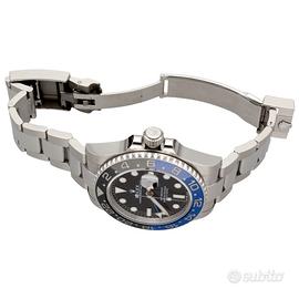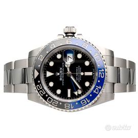 Proponiamo in vendita il celebre Rolex GMT-Master II referenza 126710BLNR, conosciuto tra gli appassionati come “Batman” per l’iconica lunetta Cerachrom bicolore nero e blu.