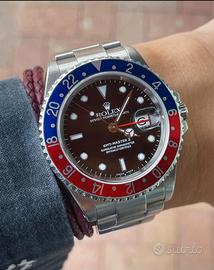 COMMERCIANTE VENDE ROLEX GMT MASTER II REF.16710 DELL'ANNO 2001.OTTIME CONDIZIONI SIA PER LA PARTE ESTETICA CHE PER LA PARTE MECCANICA E CORREDATO DI SCATOLA E GARANZIA UFFICIALE ROLEX E VIENE RILASCIATA GARANZIA DI 12 MESI SUL CORRETTO FUNZIONAMENTO. VIENE RILASCIATO CHECK ATTESTANTE LA SUA ORIGINALITÀ NELLE SUE PARTI