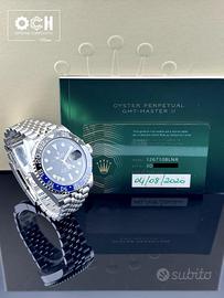 Vendo Rolex Gmt-Master II Referenza 126710BLNR Originale DIMENSIONI CASSA-40mm MATERIALE CASSA-Acciaio MATERIALE BRACCIALE/CINTURINO-Acciaio COLORE QUADRANTE-Nero MATERIALE GHIERA-Ceramica nero/blu MATERIALE VETRO-Zaffiro MATERIALE FONDELLO-Acciaio MOVIMENTO-Automatico SCATOLA-Rolex GARANZIA-Rolex del 2020 Tel Mostra numero