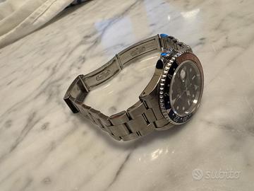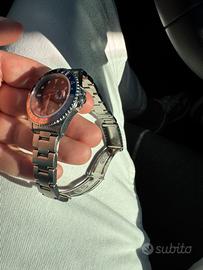 In vendita iconico Rolex GMT‑Master II ref. 16710 Pepsi, uno dei modelli sportivi più apprezzati e collezionabili della produzione Rolex. Caratteristiche: – Referenza: 16710 – Serial number: Serie E (circa 1990/1991) – Movimento: automatico Rolex cal. 3185 (GMT con lancetta ore indipendente) – Cassa: acciaio Oyster, 40 mm – Vetro: zaffiro con lente Cyclope – Lunetta: Pepsi rosso/blu originale in alluminio – Quadrante: nero originale, indici e lancette coerenti con l’epoca Condizioni: Orologio in ottime condizioni generali per l’età, con normali segni di utilizzo. Cassa ben conservata con spallette presenti, nessuna lucidatura aggressiva. Movimento funzionante correttamente. Bracciali: – Bracciale Oyster originale Rolex ref. 78790 con end‑link 501B, period‑correct per GMT‑Master II 16710 Clasp datata S2 (primo trimestre 1992) – Incluso anche bracciale Jubilee Rolex originale Corredo (Full Set): – Scatola Rolex (esterna ed interna) – Porta documenti Rolex – Certificato Official Chronometer (Rolex Watch U.S.A.) – Libretti originali Rolex (GMT‑Master e Translation) – Sigilli Rolex – Provenienza documentata Orologio autentico e coerente, completo di tutto il corredo originale. Ultimo GMT‑Master II con lunetta in alluminio prima dell’introduzione della ceramica, sempre più difficile da trovare in configurazione full set con bracciale Oyster corretto. Ulteriori foto o dettagli disponibili su richiesta.